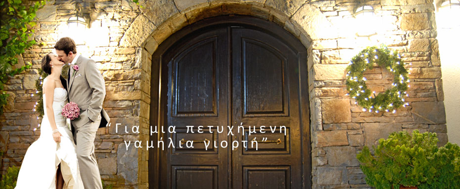 Ένα συγκρότημα που αποτελείται από 2 αίθουσες δεξιώσεων, ένα μικρό κτήμα και την από το 1970 οικογενειακή ταβέρνα. Χώροι με μοντέρνα αισθητική και μίνιμαλ διάθεση, menu υποσχόμενα μοναδικούς γευστικούς συνδυασμούς εξασφαλίζουν μια δεξίωση που θα θυμάστε με ευχαρίστηση ικανοποίηση και νοσταλγία για μια ζωή. Για τις όποιες αγωνίες και ανησυχίες σας θα βρείτε απαντήσεις στο χρόνο που θα διαθέσουμε μαζί σας πριν από τη δεξίωση. Οι πολύτιμες συμβουλές και το άψογο σέρβις του έμπειρου προσωπικού σε συνδυασμό με την προσωπική φροντίδα της διεύθυνσης θα καλύψουν και τις πιο υψηλές απαιτήσεις σας για μια ονειρεμένη γαμήλια δεξίωση. Άψογο φαγητό σε ποιότητα και γεύση σε μπουφέ ή σερβιριστό.